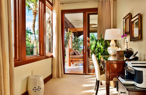 This charming spacious 3 bedroom 3.5 bath villa has many special features, including a enclosed private garden and lawn that is ideal for toddlers and young children, a private open-air outdoor grotto shower, a swing, and a private plunge pool. (The plunge pool is not heated. It is a cold splash plunge pool only.) This is truly seamless indoor and outdoor living. Shower in the private outdoor shower that is enclosed in a garden grotto, enjoy dining and sunning in your own lush green tropical garden, and cool off in the private cold splash plunge pool. Decorate your villa with fresh colorful flowers from your own garden! This villa has more outdoor garden space than any other Wailea Beach Villa, and it truly feels like a private home within a luxury resort setting.
