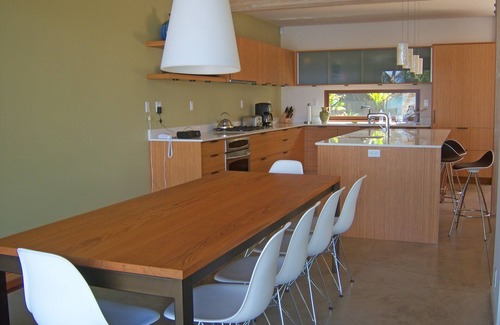 The setting is just stunning! Enter the back gate, and the first view looking through the glass door, across the entry area, and beyond the patio is of the ocean framed by palm trees, and the sandy beaches of Paia, Baldwin and Spreckelsville. The property is fenced and lined with vegetation on both sides to provide great privacy. It sits at the end of a little laneway, WALKING distance to all of the shops and restaurants in Paia. Sitting between the house and the ocean is a 50 foot lap pool and a hot-tub. NOTE: The ocean is rocky in front of the house, and therefore NO ocean access from the property..