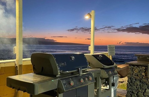 This DIRECT oceanfront unit has Queen bed and is fully equipped with all basic amenities. BRAND NEW AC in living area! New 55" flat screen in living room and 2nd TV in bedroom. Open and airy living area and open kitchen with recent upgrades include granite counter tops and new cabinets. In suite washer/dryer.! Walk in shower in Bathroom with new granite counter tops! Located on the ground floor, the unit has over sized lanai and offers easy access to sunbathing, BBQ area and an adjacent sandy beach! All basic amenities included! All linens including beach towels, beach chairs and a cooler! Snorkel rentals nearby.