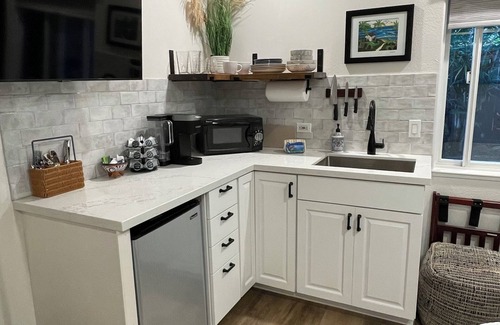 For me and my husband, the Hula Hale was perfect. When we arrived it was almost too hard to leave to explore Maui. The kitchenette was fully stocked. The bathroom was clean and had amenities if you needed anything. The bed was so comfortable. The fan and option to have the window and door open with screens closed made it nice and cool. The lanai was so beautiful, private and quiet except for the lovely rain showers. It’s located in a really beautiful part of Maui close to charming towns and great shops and restaurants. I would definitely recommend friends or family to stay here.