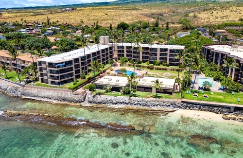 Gorgeous top floor Penthouse Suite featuring two-bedrooms and two bathrooms, breathtaking oceanfront 270 degree views from the spacious 50 foot wrap-around lanai. Enjoy turtle, whale, and sunset watching at its best! Open the screened front door and windows to enjoy mother earth's natural air conditioning with tropical trade winds and cross ventilation.