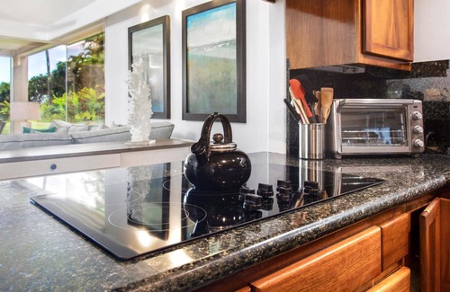 The kitchen is well appointed with a Keurig for coffee fanatics, a toaster oven/air fryer, child safe cooktop, large oven and island inspired serve ware to display your Iron Chef skills. For a gourmet grilling experience, use the exquisitely maintained power BTU grills on property. You and your family will create the best memories dining and lounging on the lanai to the sound of waves crashing just steps away from the world famous Polo Beach.