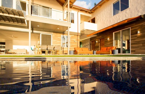 There are great outside sitting and dining areas and an infinity dipping pool. There is no access to the ocean from the property, next beaches are in Paia or outside Paia town Baldwin Beach Park.