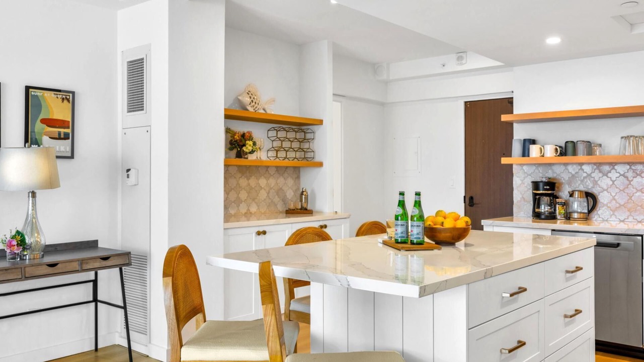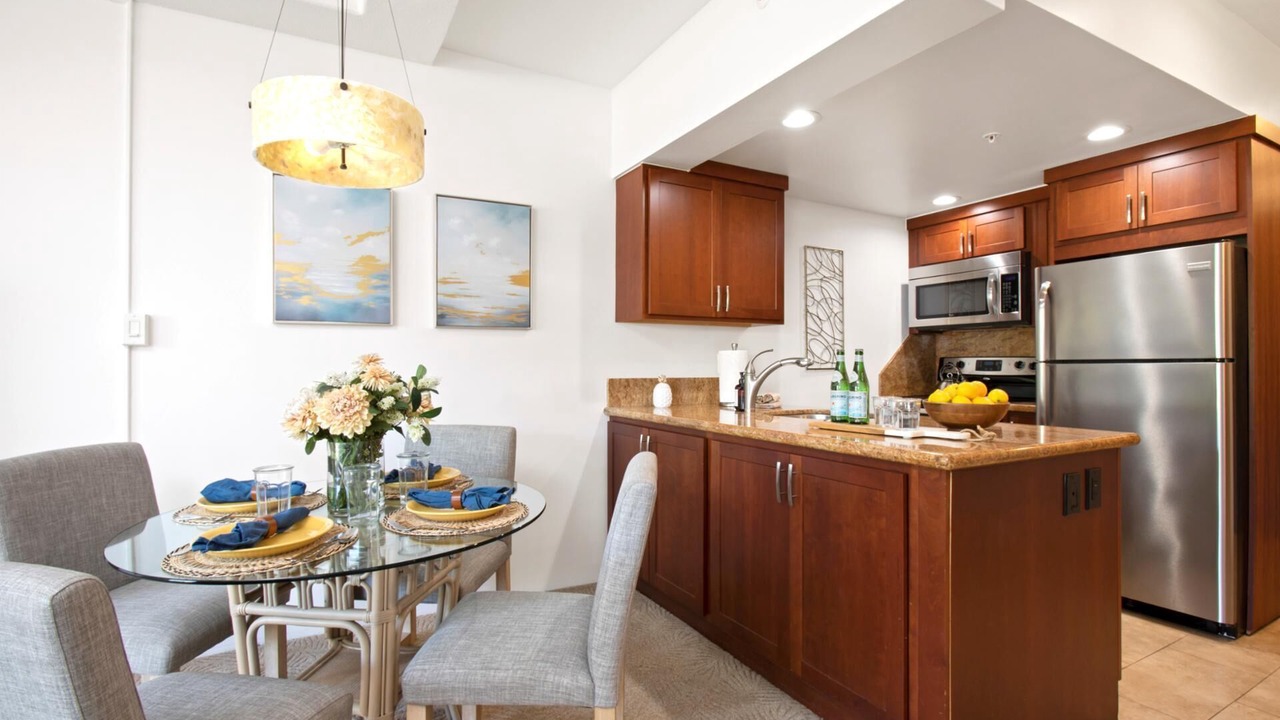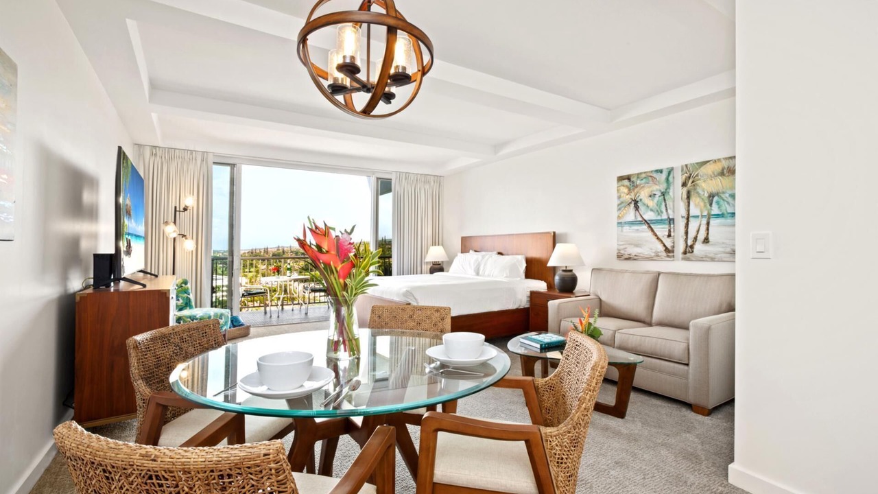 Electric kettle, Number of bedrooms - 1, Dishwasher, Full-sized refrigerator/freezer, Satellite TV service, Extra bed count 1, Free wired internet, Washer/dryer, Kitchen, Turndown service, Iron/ironing board, Balcony, Bed count minimum 2, Toaster, Hair dryer, Free WiFi, Square feet - 538, Coffee/tea maker, Ping - 15.1, Microwave, Shower only, Number of living rooms 1, Air conditioning, Free toiletries, Number of bathrooms - 1, Cookware, dishware, and utensils, Private bathroom, Rollaway/extra beds available, Square meters - 50.0, No cribs (infant beds), Resort view, Bed count maximum 2